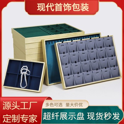超纤珠宝首饰展示托盘金边项链戒指手链手镯饰品收纳盘格盘看货盘