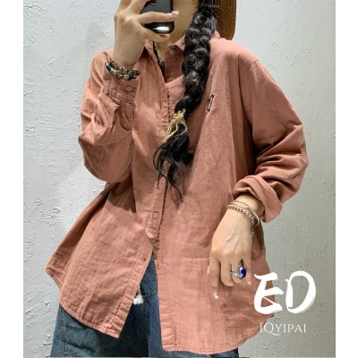 ed8629棉麻衬衫领长袖前后爱心刺绣衬衫2023新款秋季宽松休闲上衣