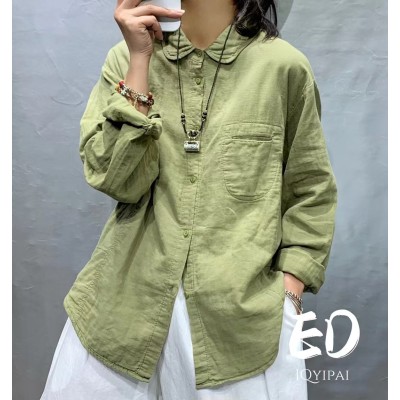 ed3546韩系棉麻料时尚百搭衬衣开衫2024早春新品文艺简约衬衫女