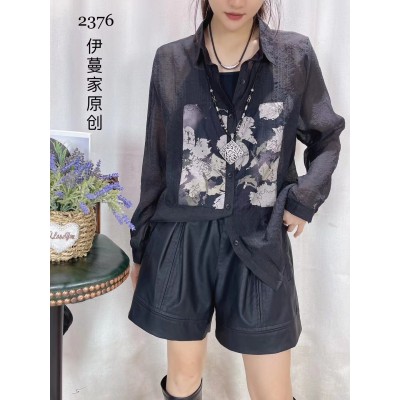 棉纱印花衬衫 2024春季新款 翻领长袖复古休闲百搭宽松开衫上衣女
