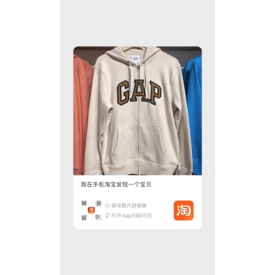 【清仓断码】GAP卫衣男女刺绣拉链外套秋冬加绒连帽衫情侣装上衣