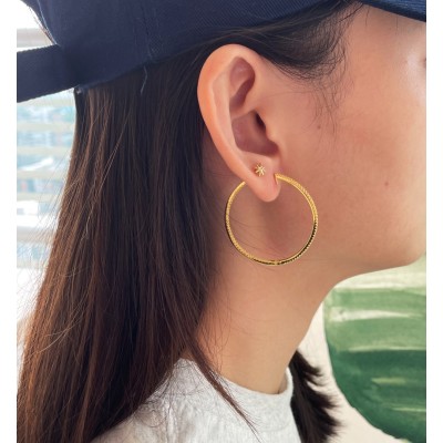 韩版S925纯银镶钻大耳环简约时尚耳环显脸小耳圈银耳饰品现货批发