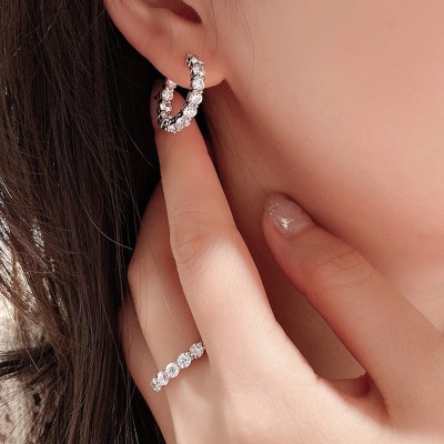 隆隆金珠宝 欧美新款925银欧美满钻豪镶耳圈潮流大气时尚男女可戴