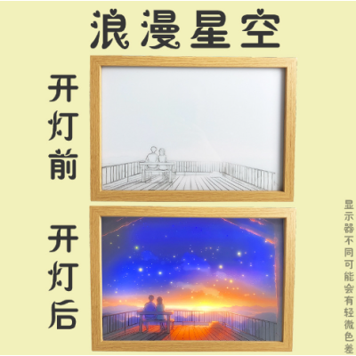 灯光画小夜灯氛围发光装饰画卧室客厅办公桌摆台创意礼物相框批发