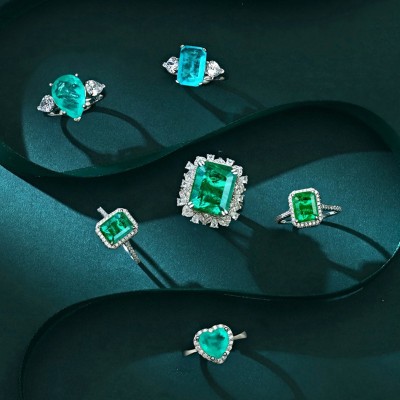 霖琅S925纯银帕拉伊巴戒指女祖母绿高碳钻珠宝仿真宝石碧玺戒指环