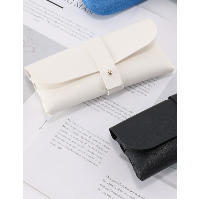 现货批发白色软包钉扣款耐用便携式卡带太阳镜 皮革眼镜盒软皮包