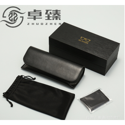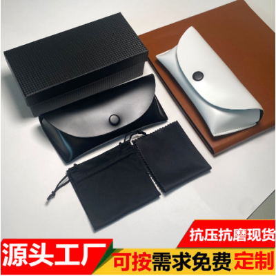 黑色PU皮质BL油边皮夹太阳光学眼镜盒套装 软包天地盖镜袋OPP布可印