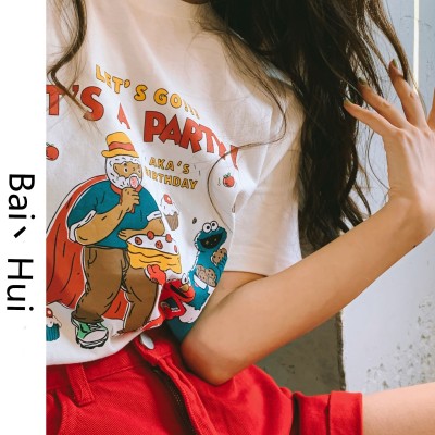 白色纯棉短袖T恤女夏季2023新款小众T恤上衣宽松半袖打底衫ins潮