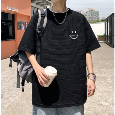 华夫格短袖男潮牌潮流日系夏季t恤oversize痞帅简约清新重磅衣服