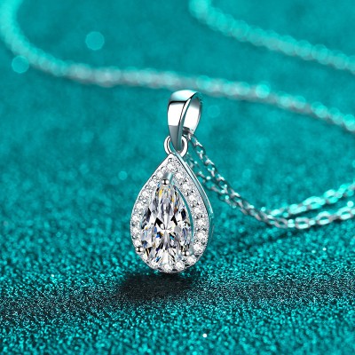 925纯银项链女5*8梨形莫桑石锁骨链镀pt950金群镶颈链厂家批发