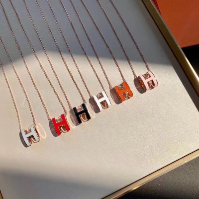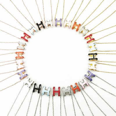 爱家H项链女纯银2023新轻奢珐琅字母吊坠mini大号轻奢百搭 锁骨链