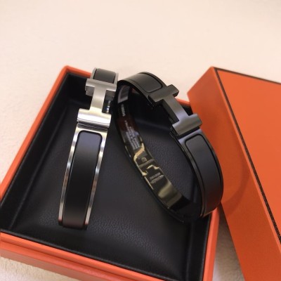爱马仕黑武士H手镯男女情侣磨砂轻奢百搭黑珐琅手环高版本不掉色